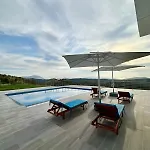 Mit Blick auf den Garten bietet die 2-Zimmer-Villa Panorama einen Patio und einen Balkon sowie einen Flachbildfernseher mit Satellitenkanälen. Der Innenraum ist mit einem Sofa und einem Schreibtisch ausgestattet und verfügt über einen Steinkamin. Zur Ausstattung des Badezimmers gehören auch eine getrennte Toilette und eine Dusche. Außerdem stehen ein Haartrockner, Toilettenartikel und Badelaken für Ihren Komfort zur Verfügung.